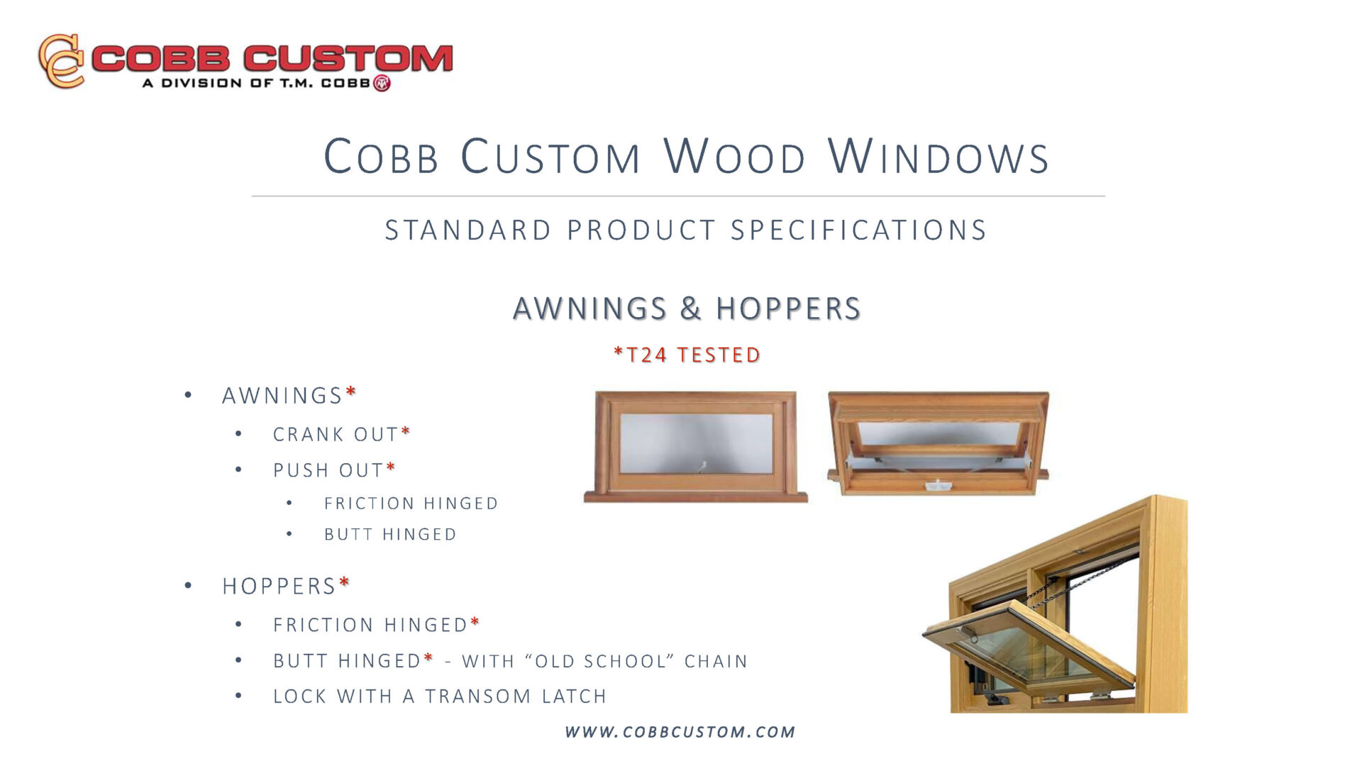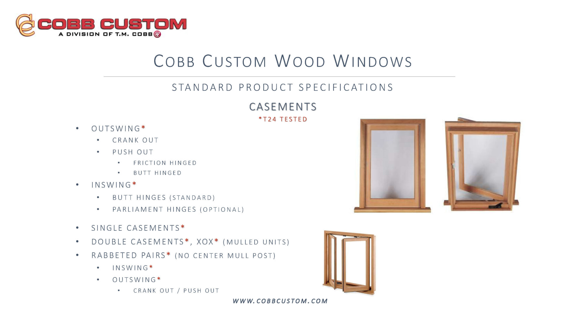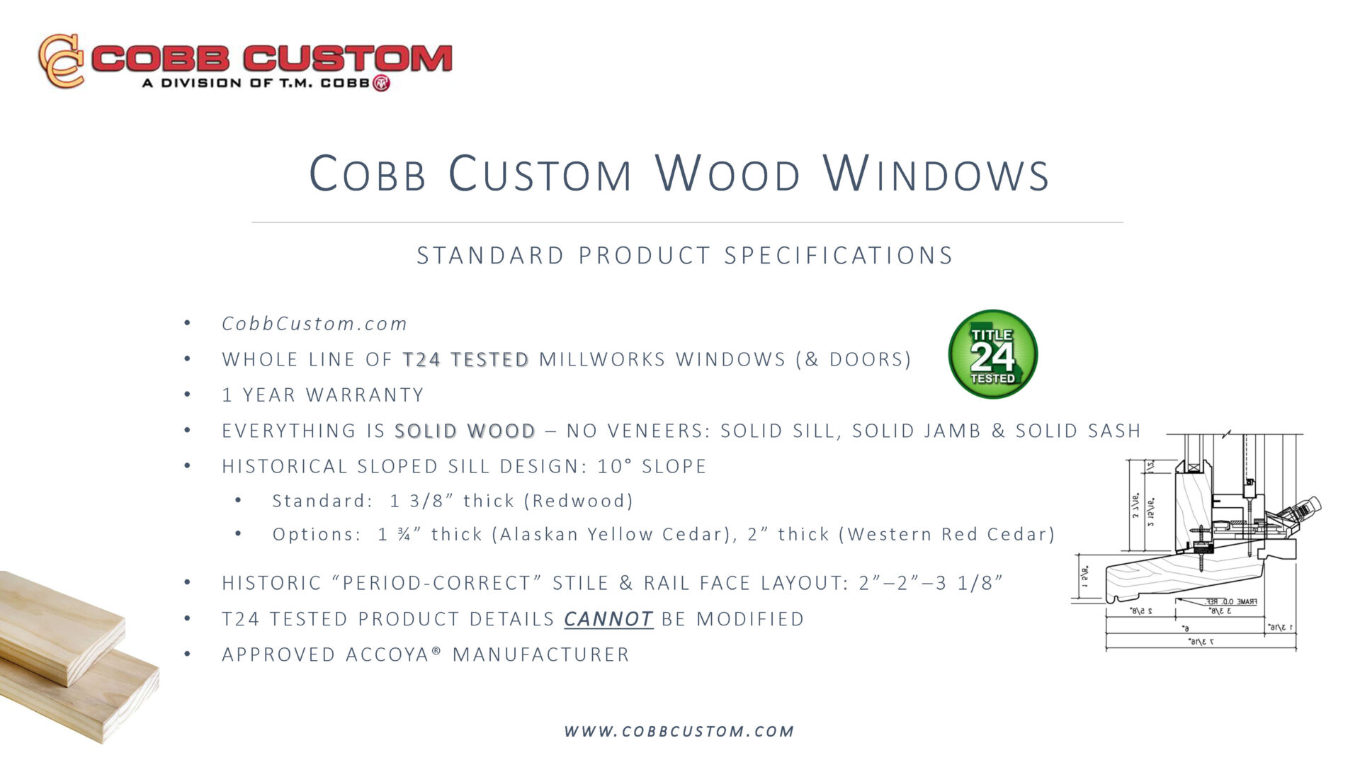 Online Product Knowledge Windows: Download / Print Slides Doors: Download / Print Slides More OptionsExterior Mouldings Glass Hardware Lite Break-Ups Panel Options Raised Moulding Options Sill Types Sticking & Stop Options Weatherstripping Wood Species More InfoGlossary Dealer Support California Proposition 65 TMCobb.com HaleyBros.com